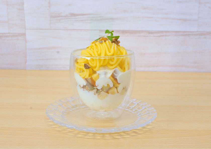 鳴門金時のモンブランがのったパフェが期間限定で登場。ほどよいサイズで食後のデザートにもおすすめです。