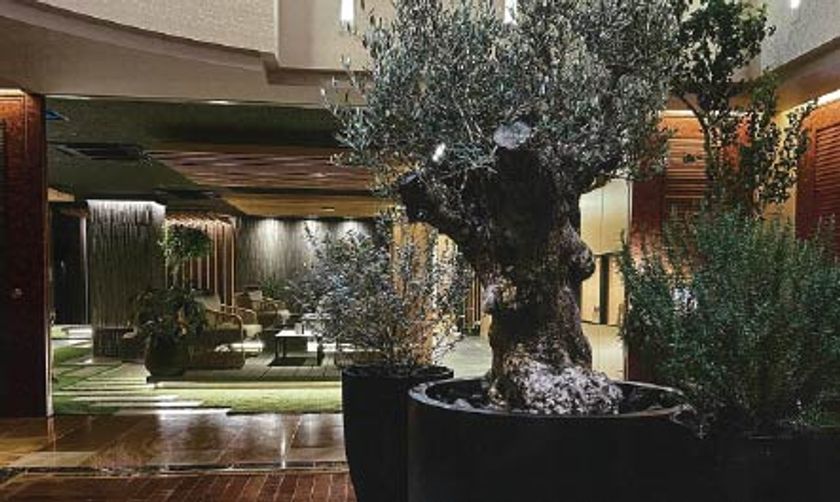 【ホテル納品事例】樹齢約200年 古木オリーブ 河口湖 某ホテルロビー
