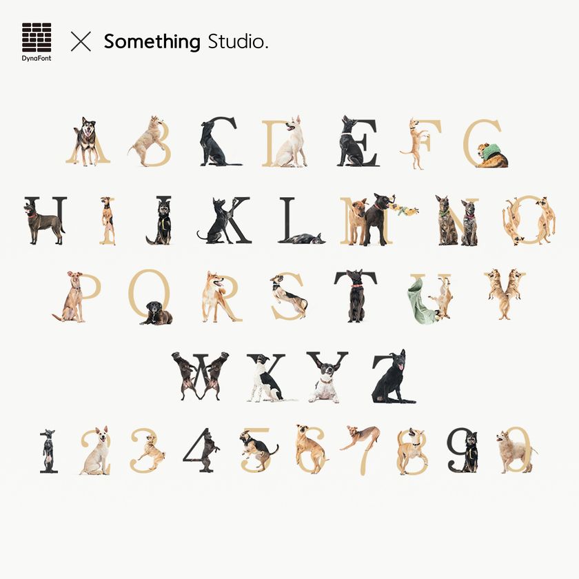 「DF華康明朝体W5(繁体字中国語版)」に含まれる英数字をベースにしており、保護犬たちの躍動感あふれる姿を組み合わせたカラーフォントです。