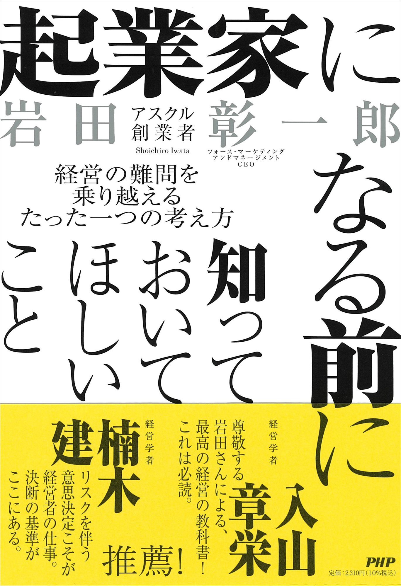 株式会社PHP研究所(京都市南区・代表取締役社長 瀬津要)は、2026年3月6日に『起業家になる前に知っておいてほしいこと――経営の難問を乗り越えるたった一つの考え方』(岩田彰一郎著/税込2,310円)を発売します。著者の岩田彰一郎氏は、文具メーカーの社内ベンチャーから巨大企業「アスクル」を創り上げた経営者です。