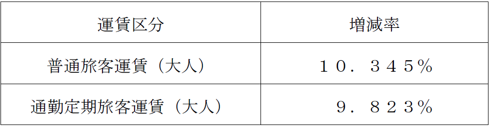 ※通学定期旅客運賃は、実績がないため廃止いたします。