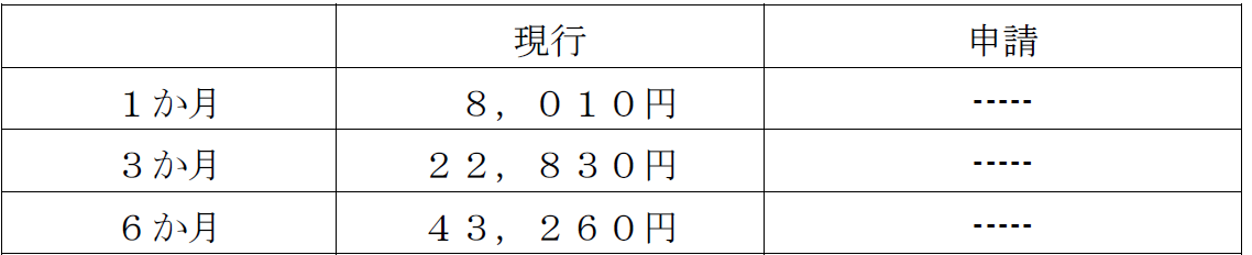 (5)申請・現行運賃比較表