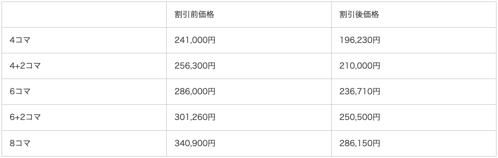1ヶ月の割引例(食事・学生寮付き)