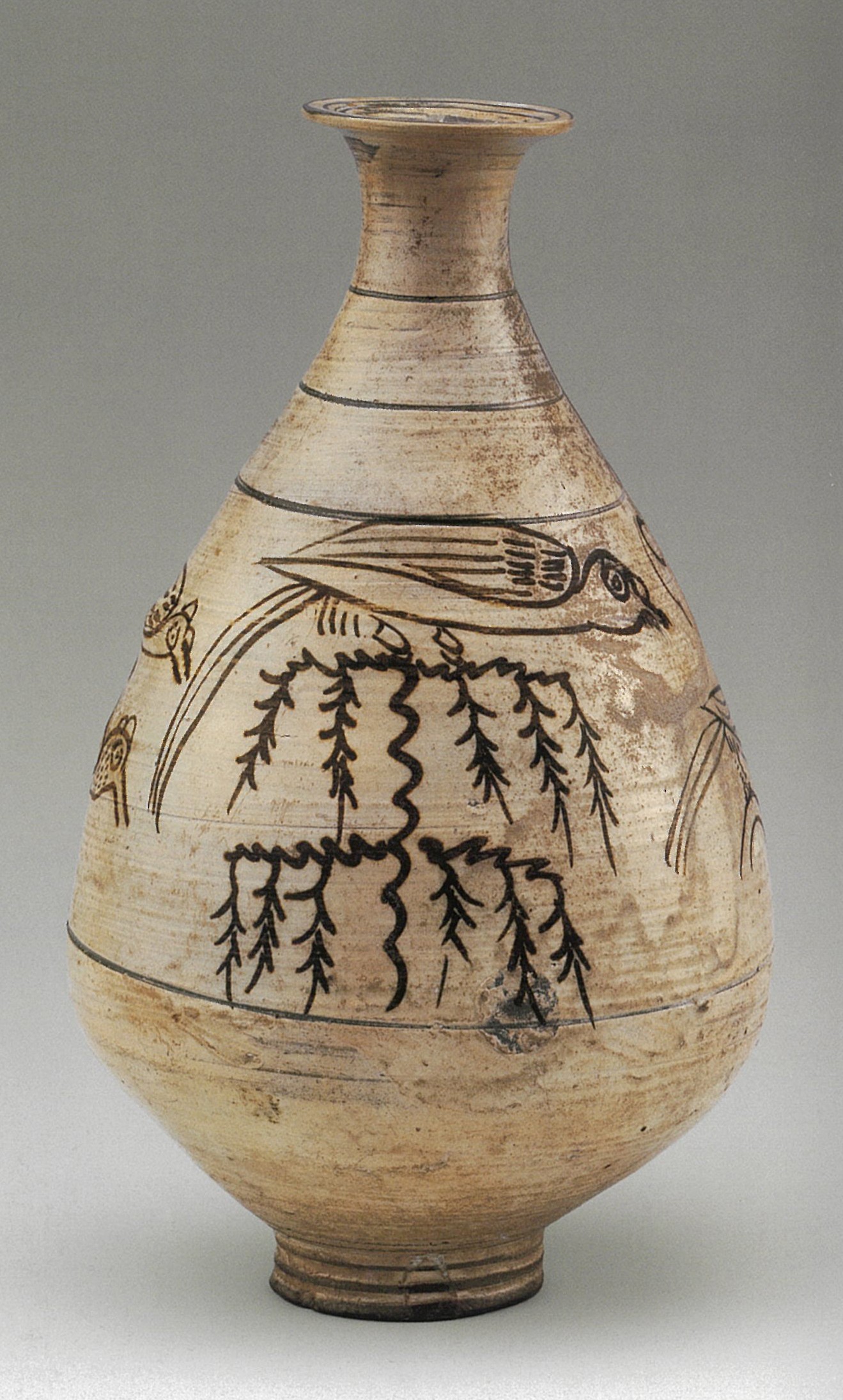 粉青鉄絵柳鳥文鉢 朝鮮・朝鮮時代