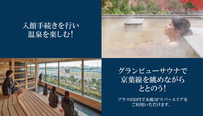 源泉掛け流し露天風呂や特色のあるサウナ、新設された【SPA+(スパプラス)】は、時間を忘れてゆっくりとおくつろぎいただける多種多様な岩盤浴などをお楽しみいただけます。