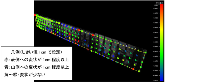 土留壁の変状検出状況(模擬)