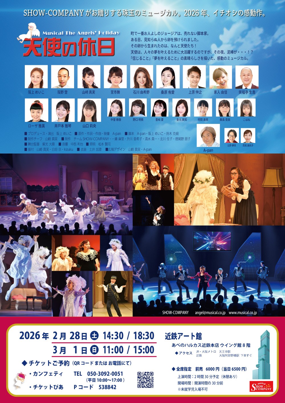 ミュージカル『天使の休日』が2026年2月28日 (土) ~ 2026年3月1日 (日)に近鉄アート館(大阪府 大阪市阿倍野区 阿倍野筋 1-1-43)にて上演されます。