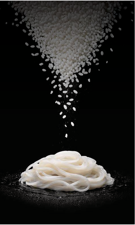 当社は、柿の種をはじめとする米菓製造で培ってきた米粉加工技術を基盤とし、それを応用することで、新食感の米粉麺開発を実現しました。