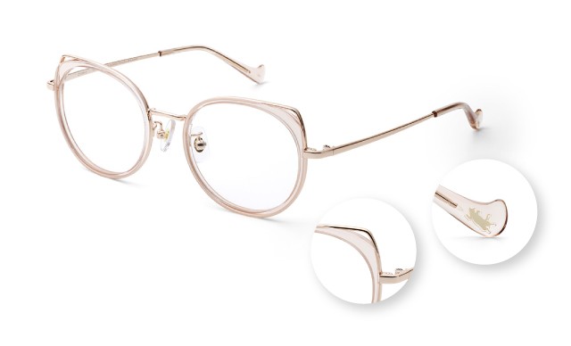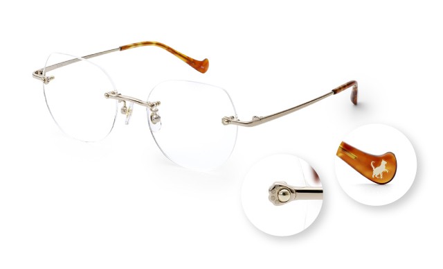 ネジ留めパーツが猫のおてての形をしており、猫がレンズを両手でギュッとホールドしているような健気な姿を表現。レンズシェイプにも、さりげなく猫の耳がデザインされています。