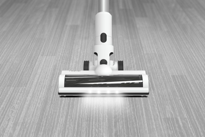 20,000Paのパワフルな吸引力。150度回転するフロントLEDライト付きパワーヘッドで、床に落ちた見えにくい花粉やホコリも逃さず吸引除去します。