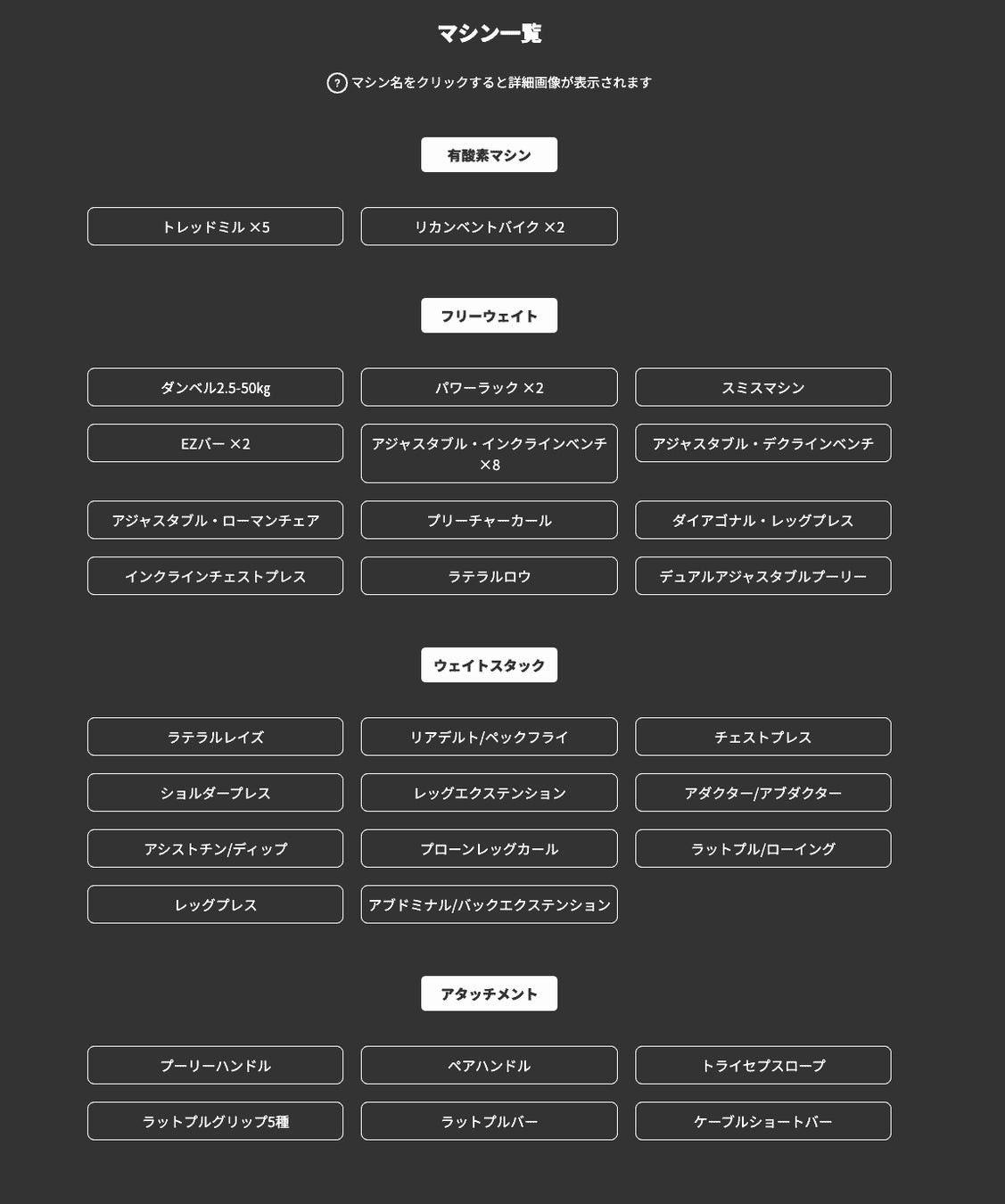 これから運動を始めたい初心者の方はもちろん、定期的にトレーニングを行っている方や、しっかりと身体づくりに取り組みたい方まで、無理なく使い分けられるマシン構成となっています。