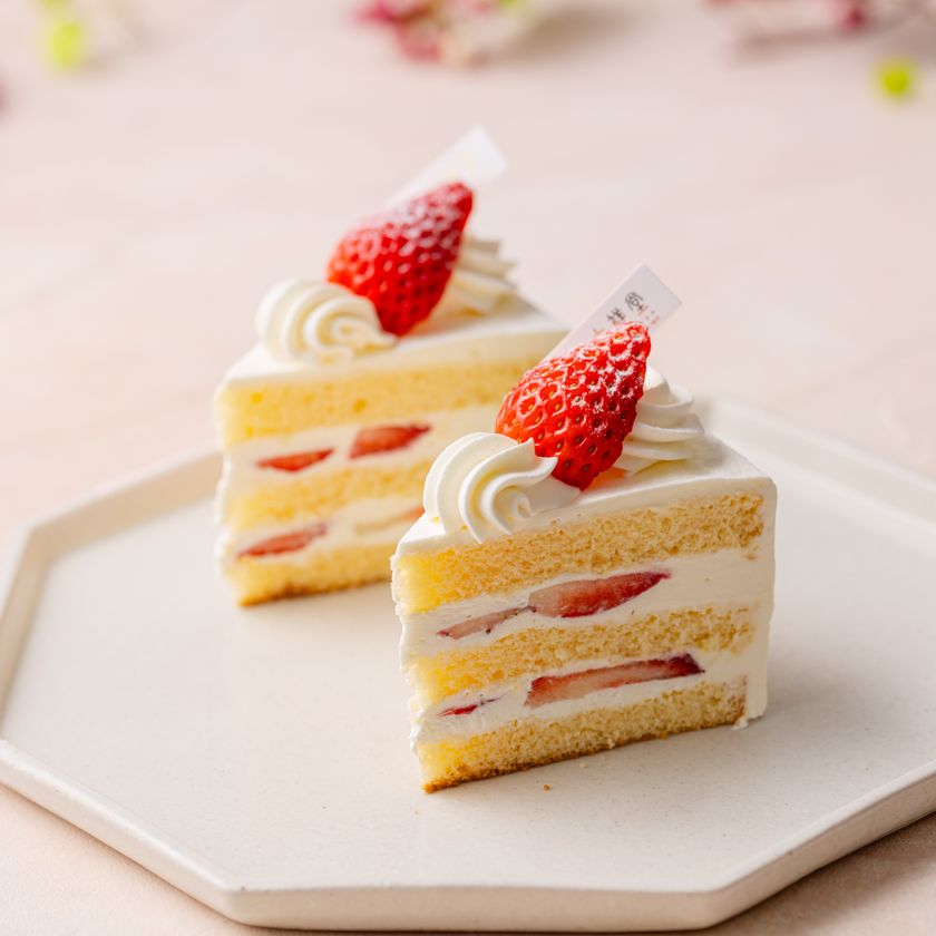 ふんわりと焼き上げたスポンジケーキに、あっさりとした生クリームと丹波産いちごを合わせた、シンプルな構成のショートケーキです。