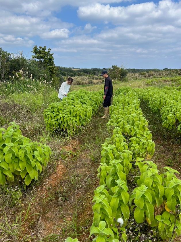 先日、渡邉はアットモア社と共に原材料の一つ「マンジェリコン」を製造する沖縄県内の農家を訪問。