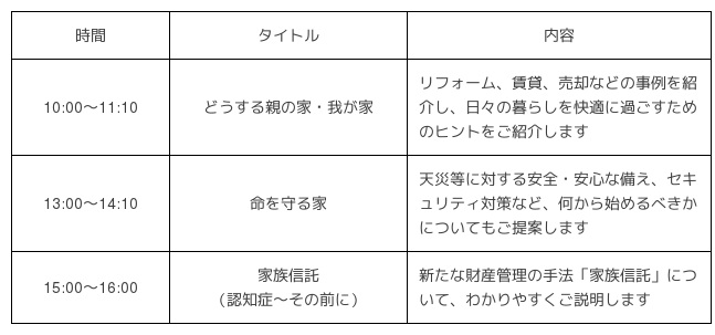 1 名 称 「住まいと暮らしを考える!」セミナー&個別相談会