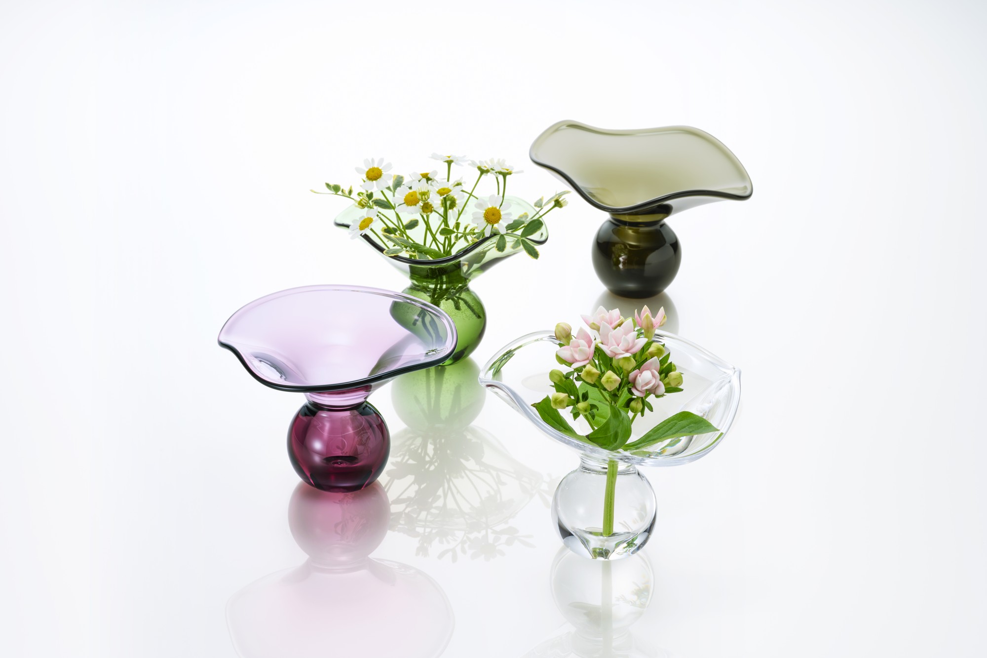 若手の女性職人2名のファーストデザインを含め、若手からベテランまでの職人たちがそれぞれのガラスへの想いから発案し、さまざまな技法を探求し作り上げた手作りの温もりが感じられる製品が出来上がりました。