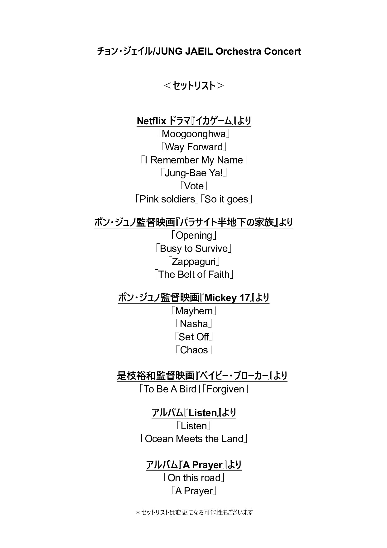 韓国の作曲家チョン・ジェイルの楽曲をオーケストラの生演奏でお届けする「チョン・ジェイル オーケストラコンサート」がいよいよ今週末2月21日(土)東京文化会館で開催。Netflixドラマ『イカゲーム』、映画『パラサイト 半地下の家族』、是枝裕和監督の映画『ベイビー・ブローカー』、2025年公開『Mickey 17』など数々の名作映像作品の音楽を手がけてきたチョン・ジェイル。