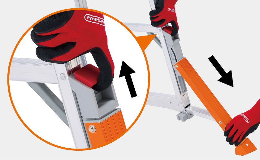 4本のアウトリガーはそれぞれワンタッチで開閉可能。片側だけ閉じて壁際に寄せることもでき、現場環境に合わせた形で設置ができます。