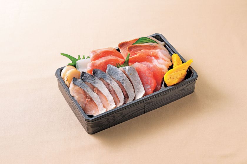 お茶を混ぜ込んだエサで育てた茶ぶりや茶鯛、奄美の黒まぐろ、霧島サーモンなど鹿児島の海鮮を一折で楽しめる弁当。