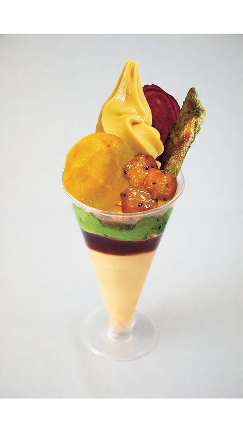 蜜のようにとろける安納芋の香ばしいペーストに甘じょっぱい大学芋を重ね、香りと食感が調和したパイ。