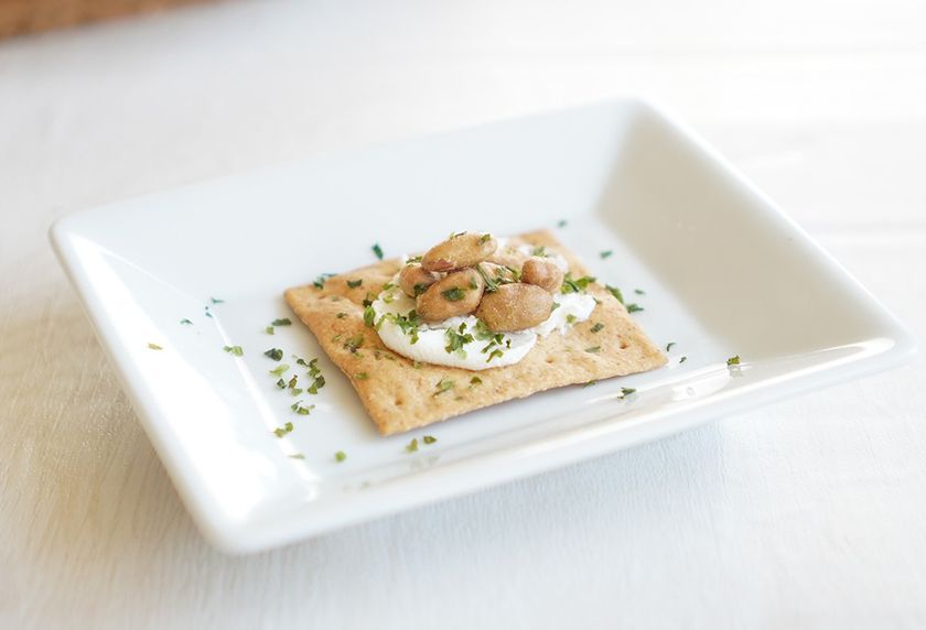 クラッカーにクリームチーズを塗り、ちょいつま納豆(醤油味)と青のりをトッピングします。