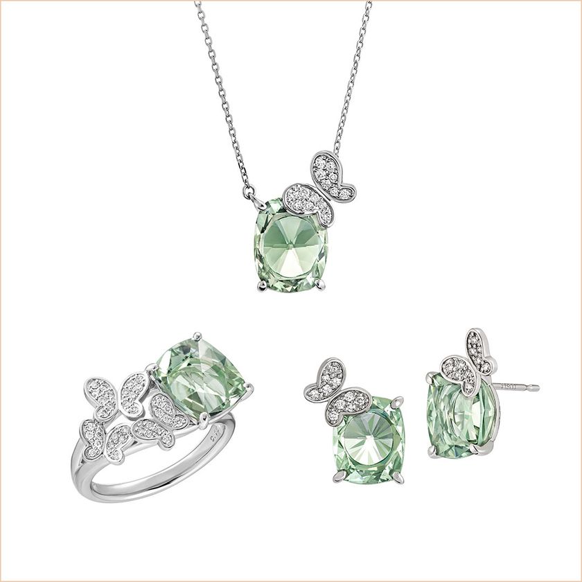 新緑の煌めきを思わせるグリーンクオーツの澄んだ透明感は、プラチナの艶めきと美しく調和し、凛とした表情を演出します。
