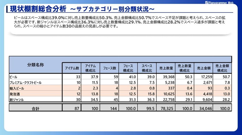 現状棚割総合分析~サブカテゴリー別分類状況~