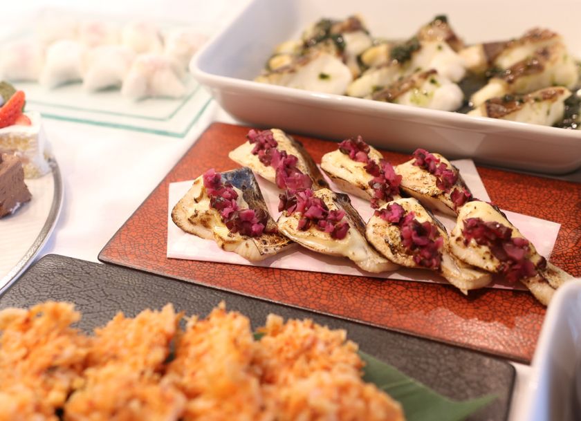 プライムビーフのローストビーフ / 鶏唐タルタル / 桜鯛のポワレ 青さソース /長芋と新じゃがの明太子ソテー / 鶏肉のレモンソース煮 / 鴨肉のロースト デコポンソース など