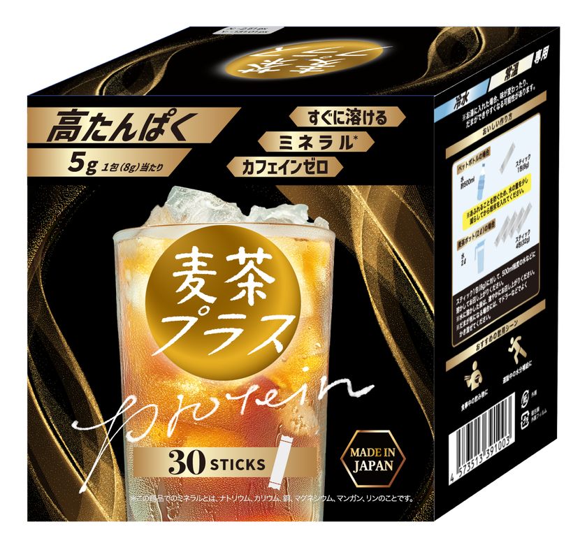 「麦茶プラス」は、“毎日飲む”麦茶に“毎日摂りたい”たんぱく質をプラスするという、ありそうでなかった組み合わせを実現した粉末飲料です。プロテイン・サプリメント開発の専門家集団「合同会社おなかラクト」との共同開発により、たんぱく質特有の風味や舌触りを抑え、麦茶本来の香ばしさを引き出す特許技術「タンパクティー製法」※2を確立。“我慢して飲む”のではなく、「美味しいから続けられる」たんぱく質補給習慣を目指しています。