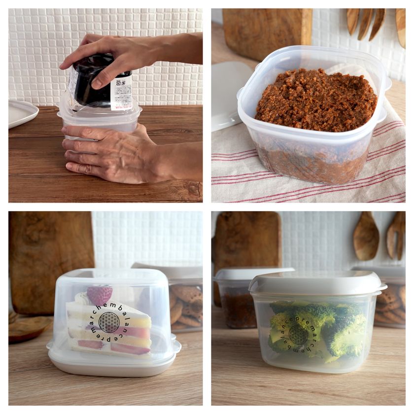 フタをひっくり返して食品をのせ、本体を逆さまにして被せることで、崩れやすい手作りケーキや、盛り付けた後のおかずの一時保存容器としても活躍します。
