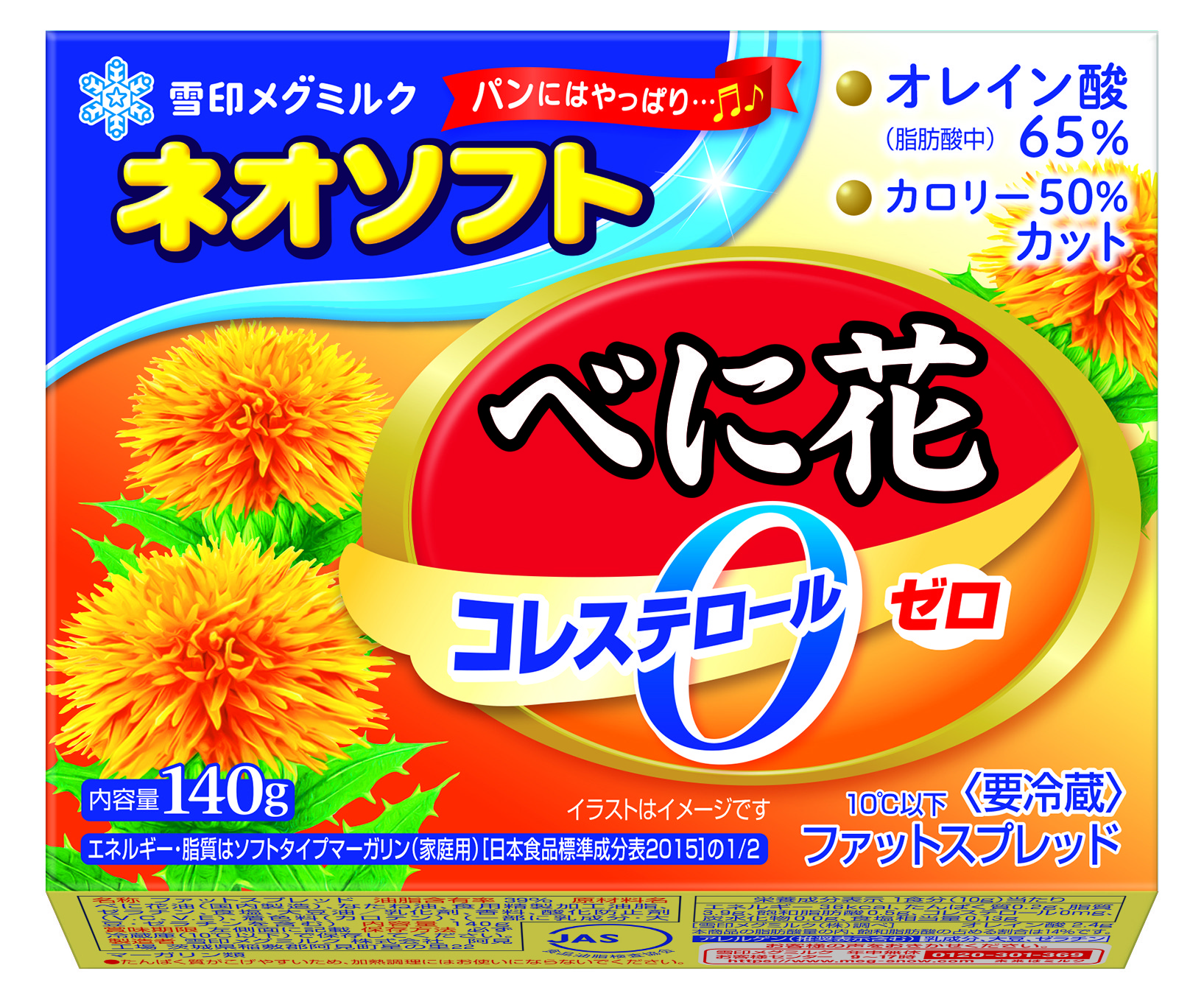 左から: 「ネオソフト」(140g)「ネオソフト コクのあるバター風味」(130g) 「ネオソフト ハーフ」「ネオソフト べに花」(各140g)「バター仕立てのマーガリン」(130g) 「雪印ソフト&バター」(120g)「雪印北海道練乳 ソフト」(140g)
