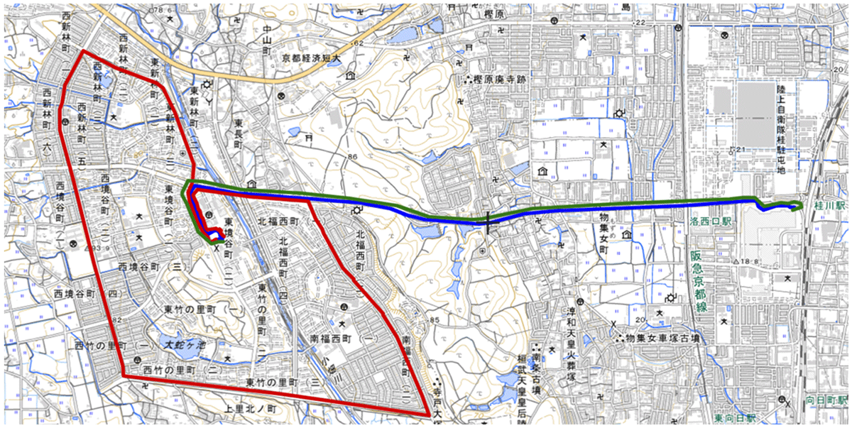 JR桂川駅前⇒洛西バスターミナル⇒(洛西ニュータウン周回)⇒洛西バスターミナル⇒JR桂川駅前
