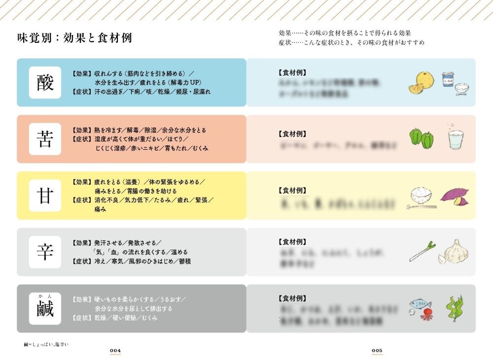 巻頭付録 味覚別:効果と食材例/温める食材、冷やす食材