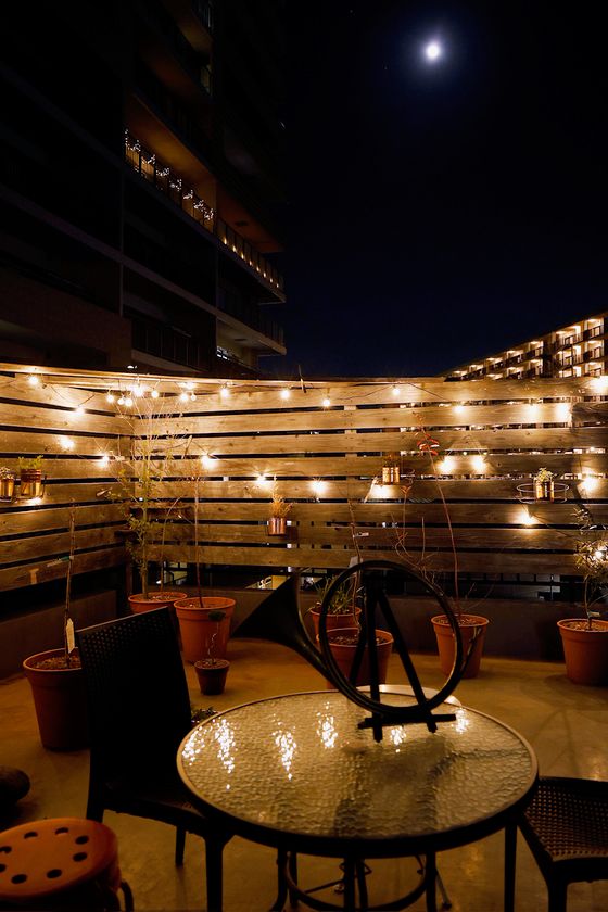 月光荘ファルベ3階、テラスの隣にあるプライベートアトリエ。自宅ではなかなか実現できない開放感の中で、風と光を感じながらの制作が可能。コーヒーやビールの無料サービス付き。