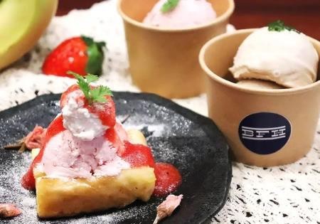 濃厚なバナナと黒糖でコクを出し、八女抹茶を合わせた春らしいミルクアイス。