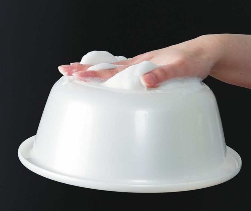 洗面器が浮くほどの泡の吸着力