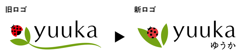 新しくyuuka(ゆうか)表記となり、茶葉とてんとう虫はそのままに、生活に寄り添うようなシンプルで優しいシンボルマークに。