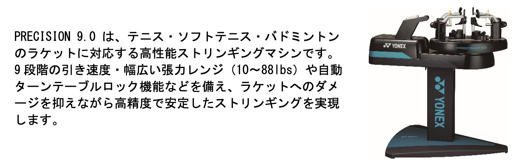 弊社は、全豪オープン、上海マスターズ、木下グループジャパンオープンといった国内外の主要大会において、ストリンギングサービスの実績を有し、国際舞台で豊富な経験を重ねております。ヨネックスストリンギングチームは、世界各国から集まるトップストリンガーで構成されており、「PRECISION 9.0」を中心とした高精度なストリンギングマシンを使用し、選手一人ひとりの要望に応じた精密なストリンギングを実現しています。