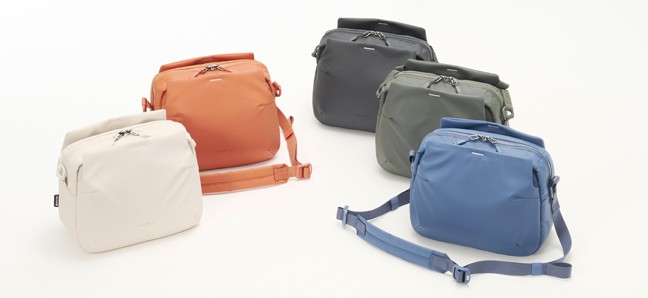 小型ミラーレス一眼やスマートフォンなどを軽快に持ち運べるコンパクトモデルです。前面と背面には普段使いにも便利な大型ポケットを装備。日常に馴染むミニマルなデザインで、ちょっとしたお出かけや旅先でのサブバッグとしても活躍します。