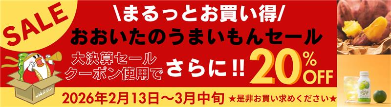 JA全農が運営する産地直送通販サイト「JAタウン」のショップ「まるっと完食おおいた~美味しいもんいっぱい送っちゃんけん~」は、2月13日(金)~3月中旬まで「おおいたのうまいもんセール」と題して、「甘太くん」や「つぶらなカボス」などの対象商品をお得な価格で販売しています。