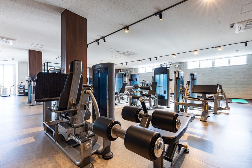ジムエリアには、初心者から上級者まで対応できるトレーニングマシンを完備。