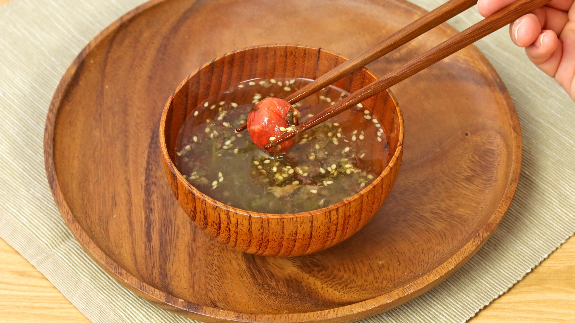 「海藻がいっぱい入った丸ごと梅のお吸い物」
