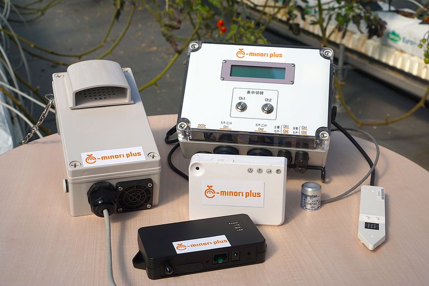 『e-minori plus』は、ビニールハウスの環境測定および制御をリーズナブルに実現する複合環境制御システムです。ハウス内外および土壌環境を各種センサーで測定し、そのデータをクラウド上に自動保存。パソコンやスマートフォンから、いつでもどこでも環境データの確認や制御ノードの操作が可能です。