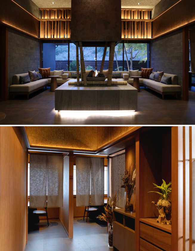 (上)サウナ付貸切風呂 (下)プレミアムリバースケープルーム