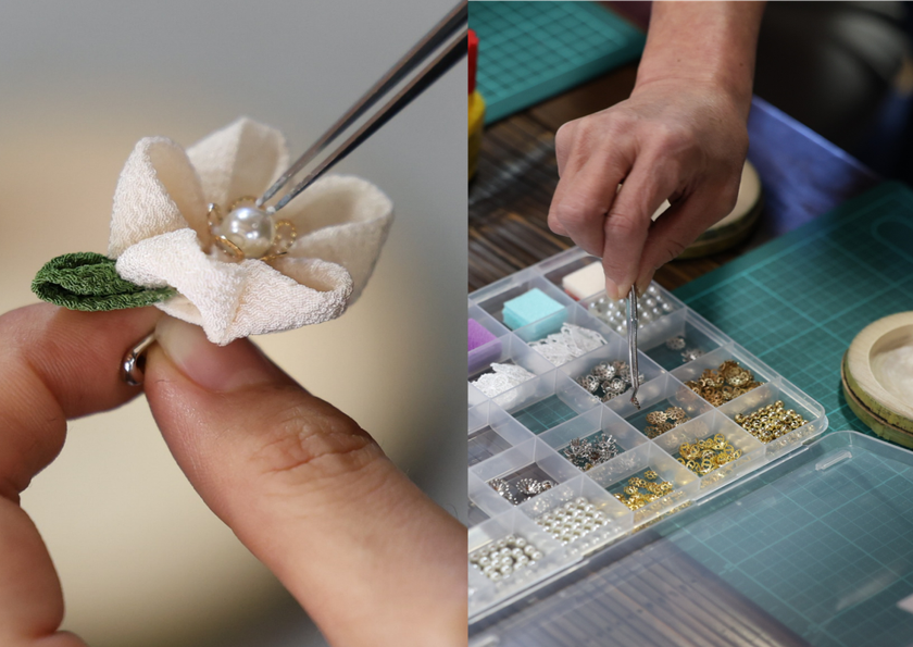 昨年7月、城下町通りに誕生した新たな観光拠点「小江戸とりっぷ館」。かつての商家を思わせる建物内には、大多喜城下町の歴史や文化を伝える展示が並ぶほか、工芸体験コーナーでは、作品づくりを通して気軽に日本の伝統文化に触れることもできます。町の特産品である竹を使用した「竹灯籠づくり」や、江戸時代から伝わる技法で、ちりめん布をつまんで花などを作る「つまみ細工」がおすすめ。体験のあとは、併設する「きんぎょ茶や」でハーブティーとともに地元銘菓を味わってみてはいかがでしょうか。