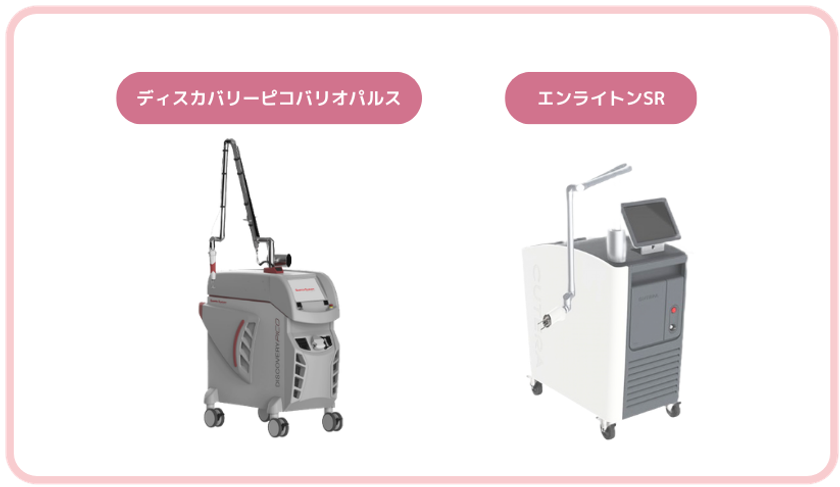 まゆりなclinic名古屋栄では、肌状態やシミの種類に応じて使い分けられるよう、ピコレーザーを2種類(エンライトンSR/ディスカバリーピコ バリオパルス)導入し、さらにルビーフラクショナル、レーザートーニング、OPトーニングも備えています。