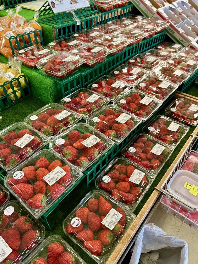 農産コーナーには地元生産者さんのジューシーないちごがずらりと並びます!!