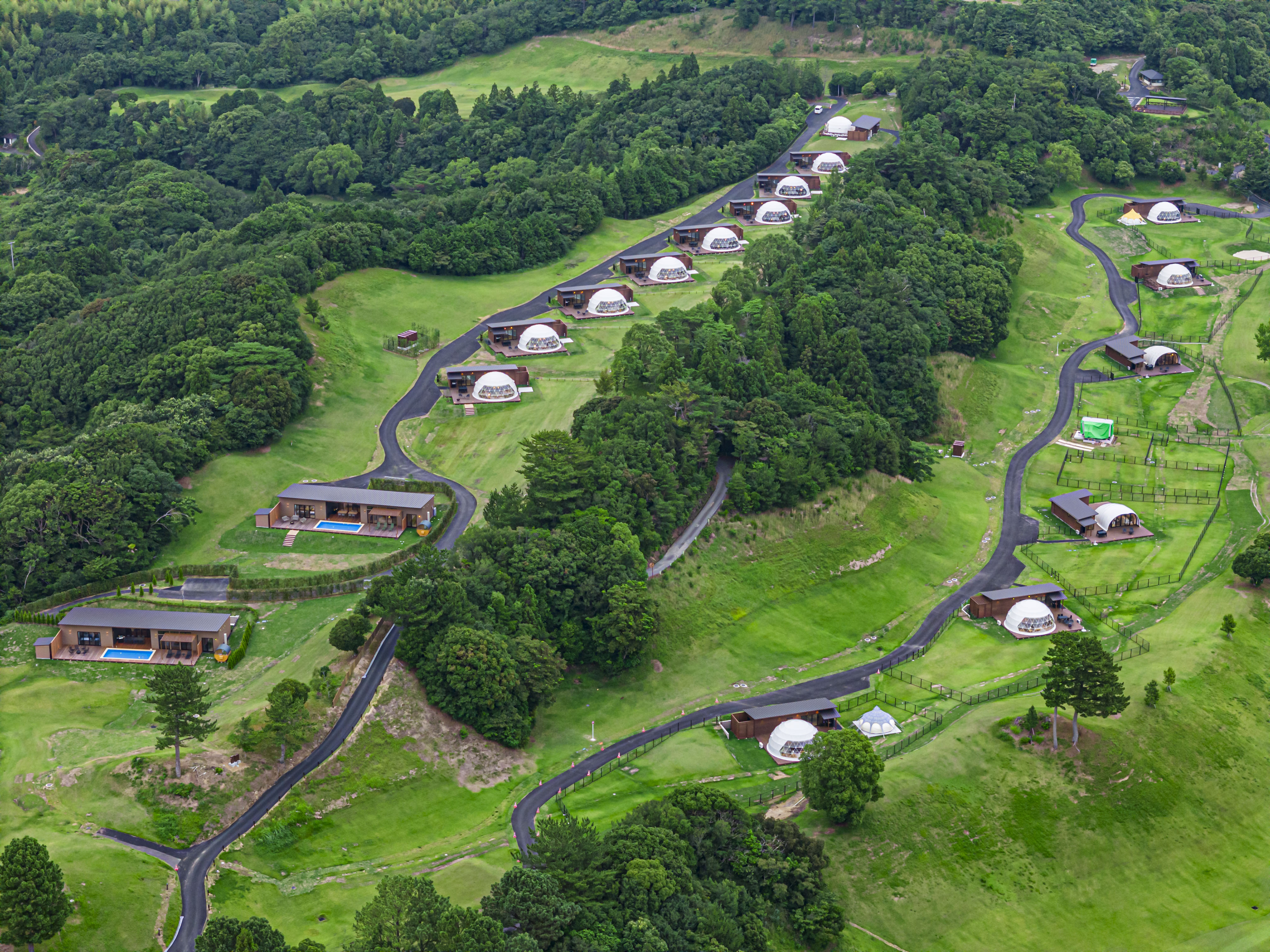 志摩グリーンアドベンチャーは、英虞湾を望む自然豊かなゴルフ場をアクティビティリゾートへ転用した施設であり、「満天の星空、英虞湾の眺望、整備された芝などをお楽しみいただけるグランピングフィールド」と「大自然を満喫しながら身体を動かして遊ぶことができるアトラクションフィールド」からなります。グランピングご利用のお客様につきましては、大自然の中で癒される特別な時間を提供するとともに、滞在中のアトラクションフィールドの利用を通じて大自然を体感していただくことにより、ウェルビーイングの向上を目指しております。