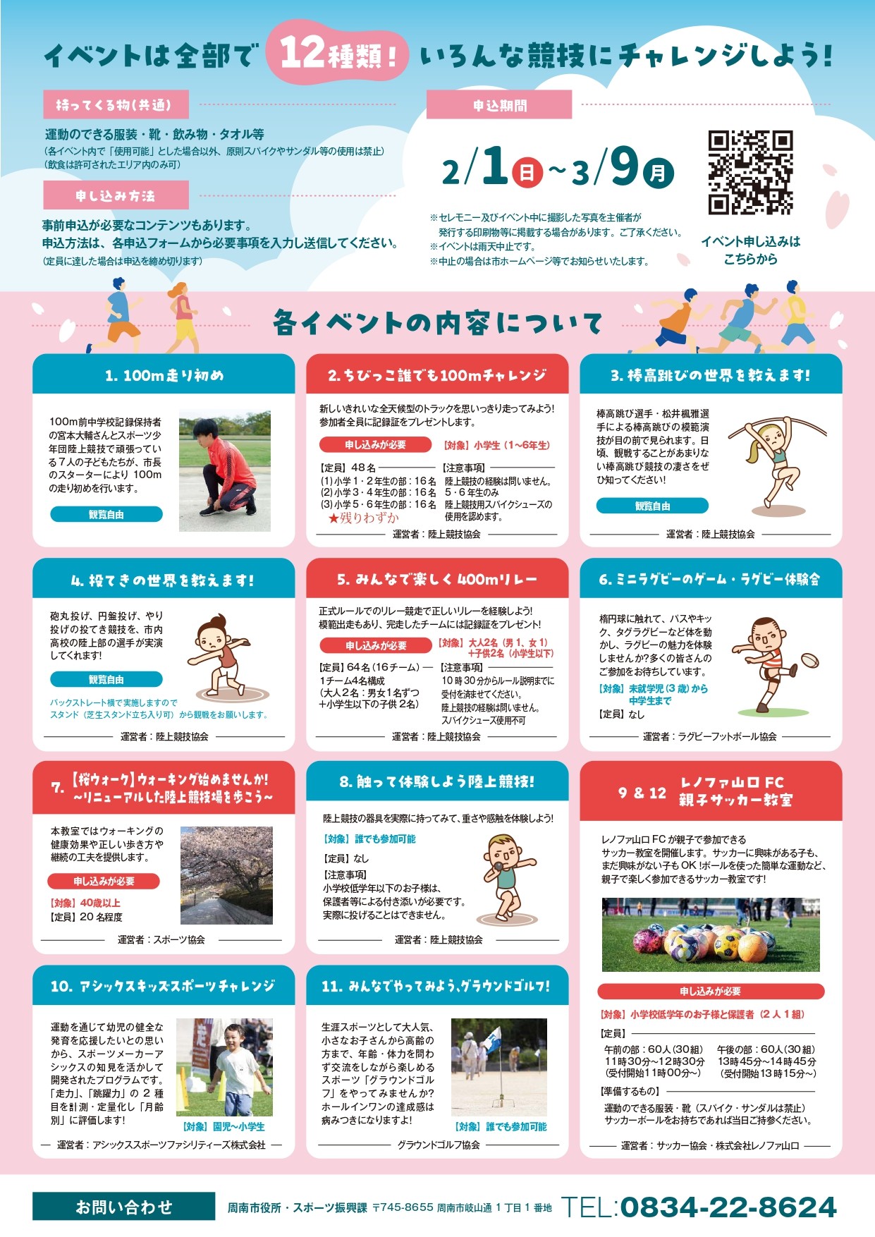 周南緑地の陸上競技場の改修工事が終了し、第3種公認競技場として4月からリニューアルオープンします。さまざまなスポーツ活動や地域活動をサポートする新たな拠点として、ぜひ活用してください。