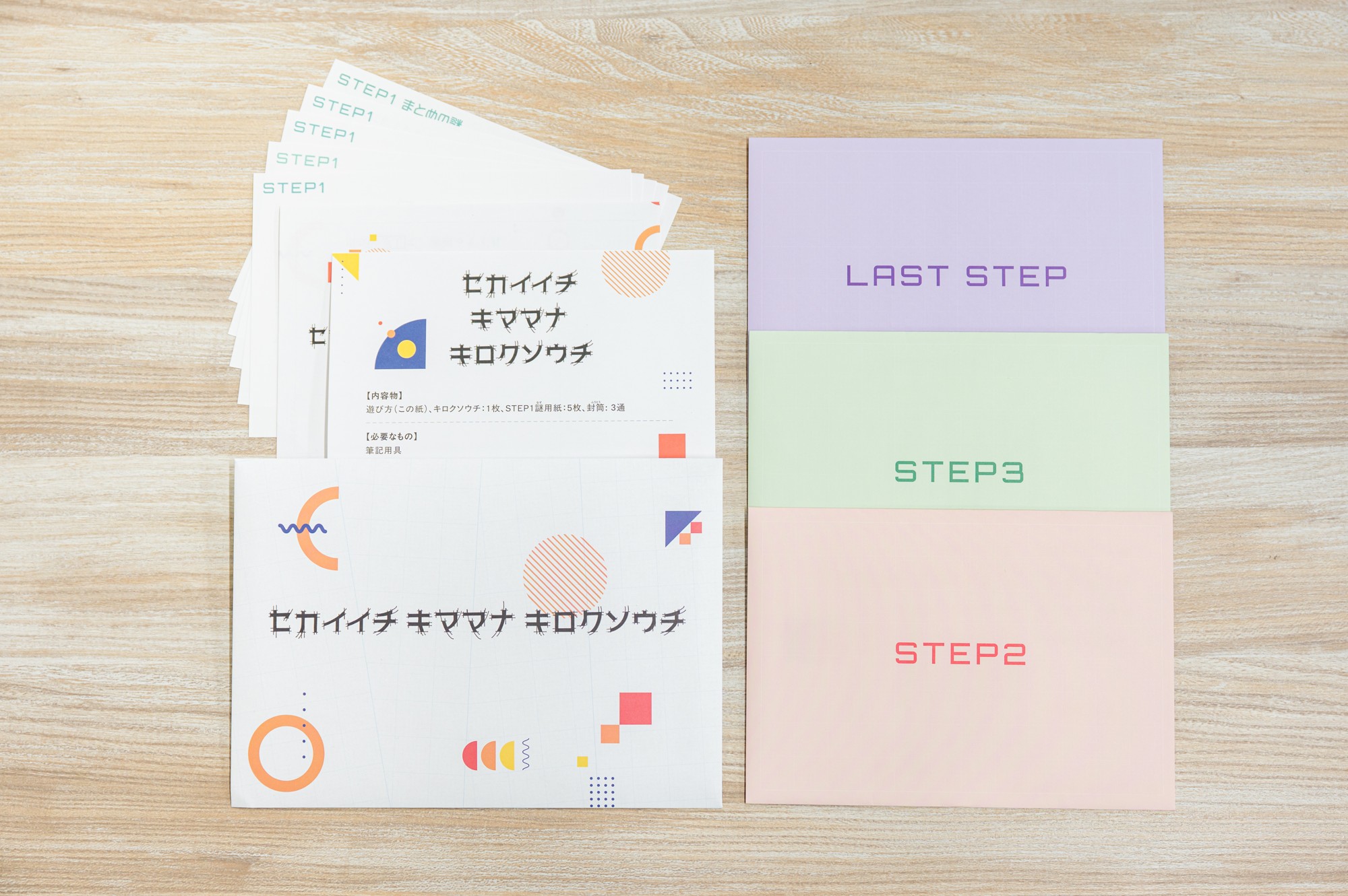 「二つ折りにされたキロクソウチの中に謎用紙を挟み込み、ひとつの冊子を完成させる」ことを目的として解き進める