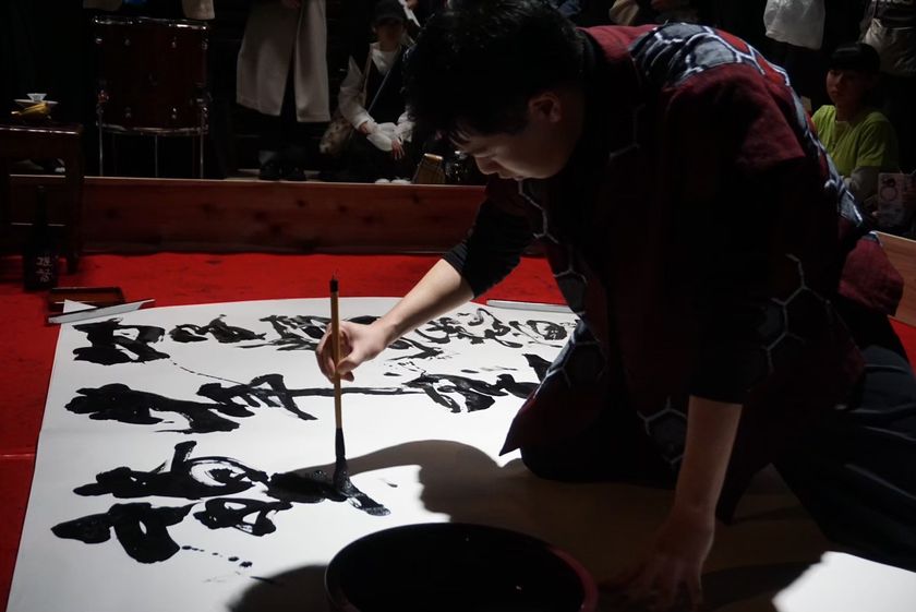 会期中は席上揮毫を実施。筆が走る音、墨の匂い、会場の静寂。